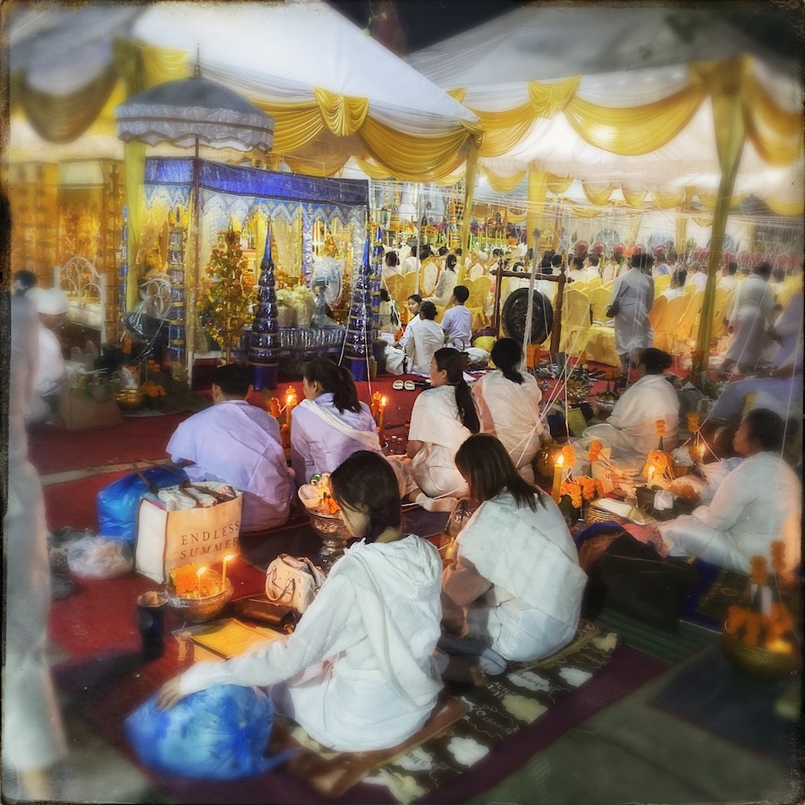 千人仪式,每个地垫都有鲜花,蜡烛,白衣人,绳子结,所有绳结都有同一个源头。很梦幻的场景。在那里,有种很奇怪的体感,像是压力下身体的反应,肩膀发酸,后脑发热。大概是被震撼到了。