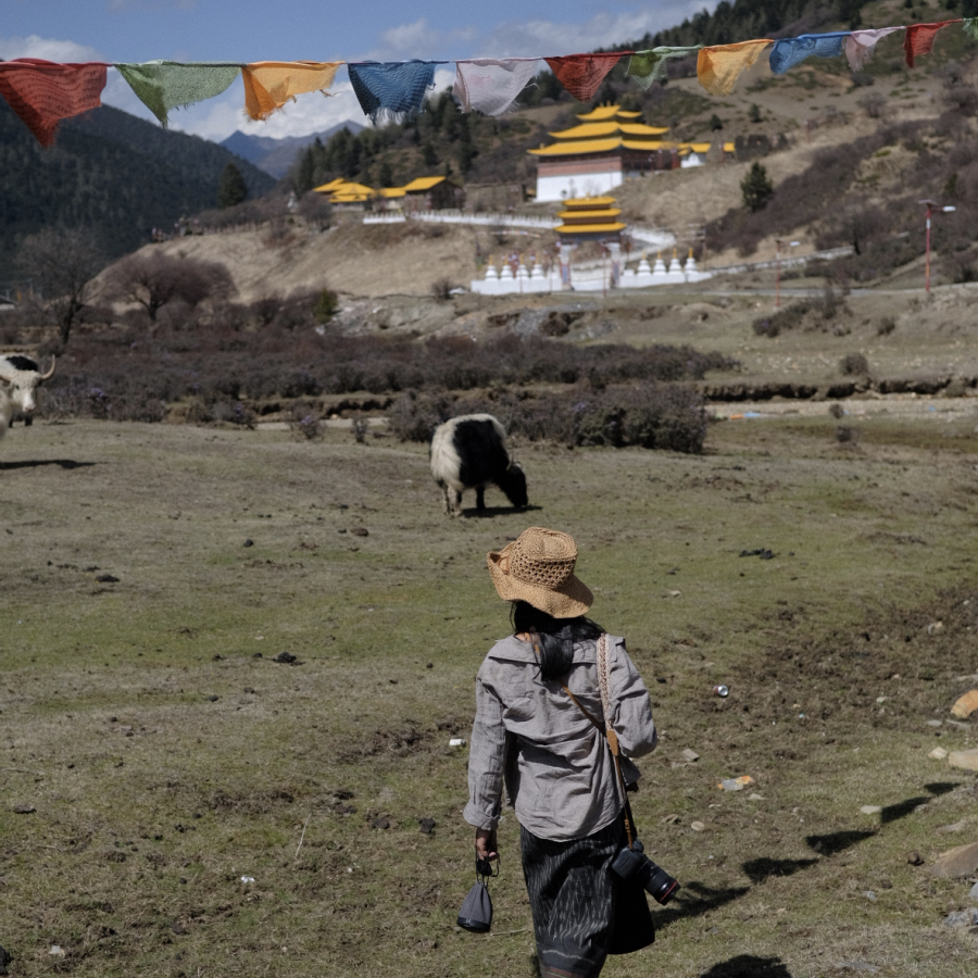 七年前在宗萨寺下面小广场附近遇见一位老奶奶,脸上充满清澈与祥和,是我想象中空行母的样子。钦乐的员工白玛说认得她,能找到。五点法会结束后,两个邻居带我们去找奶奶,就在小广场旁边的红房子里。如今她八十已过,坐在小屋子里,认出照片中的自己。她淡淡地讲述,自己一生没有孩子,没有房子,寄居在亲戚家。生在这个生活如此依赖家庭结构的山谷里,走着一条如此不一样的人生路,依旧在年迈时散发着祥和的光,定是个强大的灵魂。