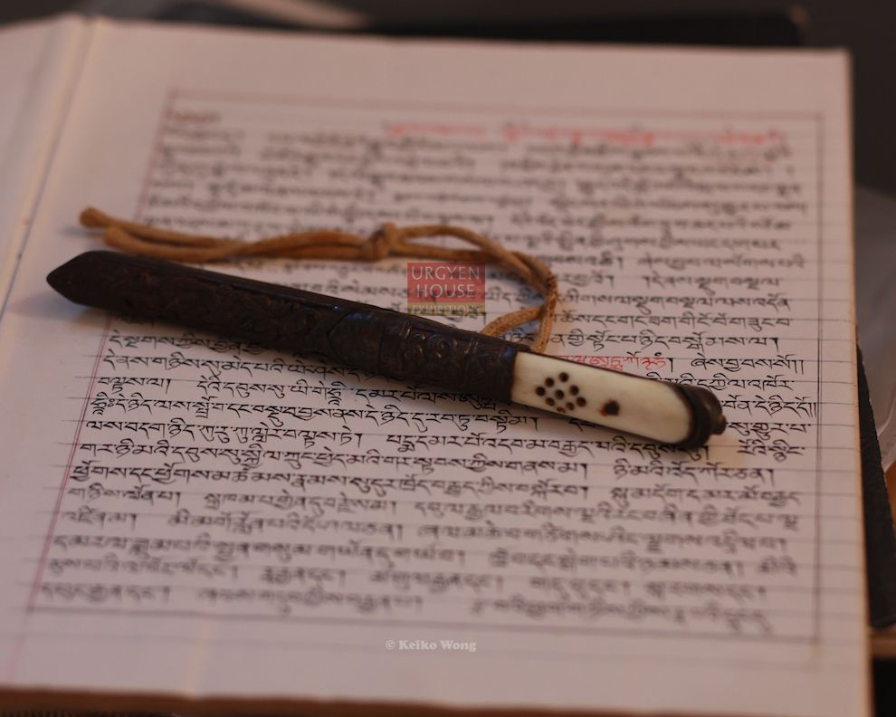 看到一张顶果仁波切的照片,非常喜欢。找清晰图时,发现Urgyen House网页 (www.urgyenhouse.org),里面有一个section是关于大师及遗物展览,看到这把刀,忽然眼泪涌上来,说不出原因。傍晚出门时,感觉那股泪水,清空了无名的东西,从头顶到脐部,一阵清爽。